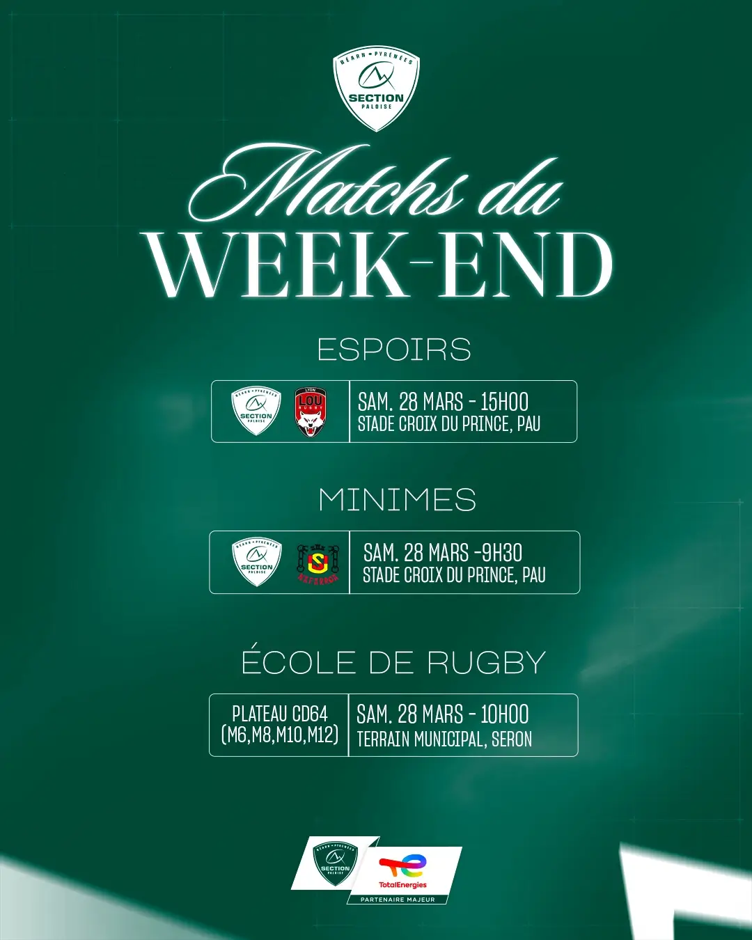 Rendez-vous samedi à 15h au stade de la Croix du Prince pour supporter nos jeunes !